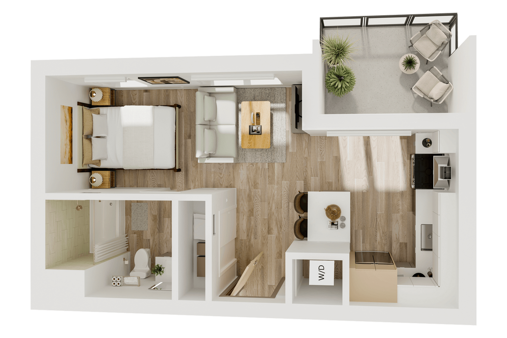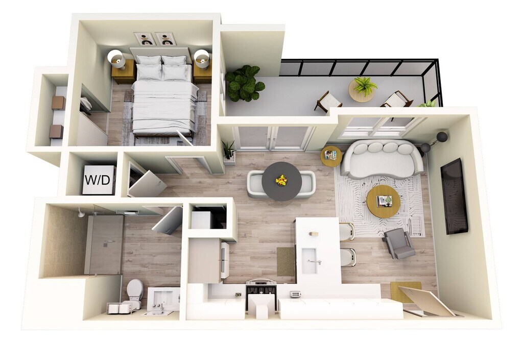 1 Dormitorio, 1 Baño, 750 pies²Disponible AhoraGalería del Modelo