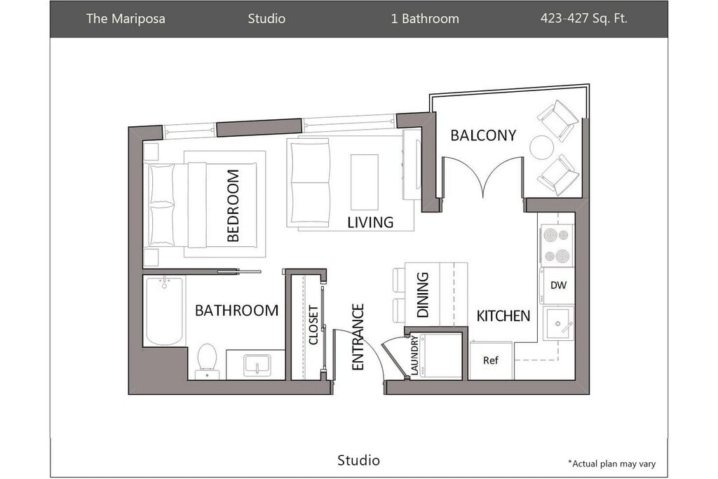 Estudio, 1 Baño, 424 pies²Disponible AhoraGalería del Modelo