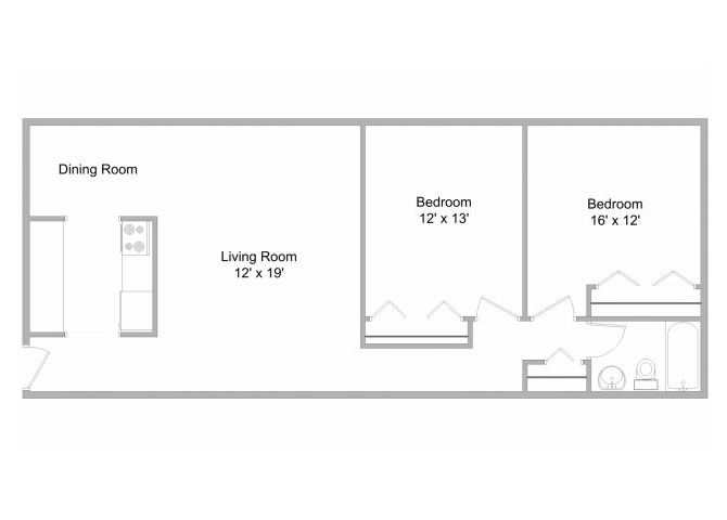 Modelo de apartamento: Two BedroomDesde $9002 Dormitorios, 1 Baño, 823 sq ftDisponible Ahora![]()