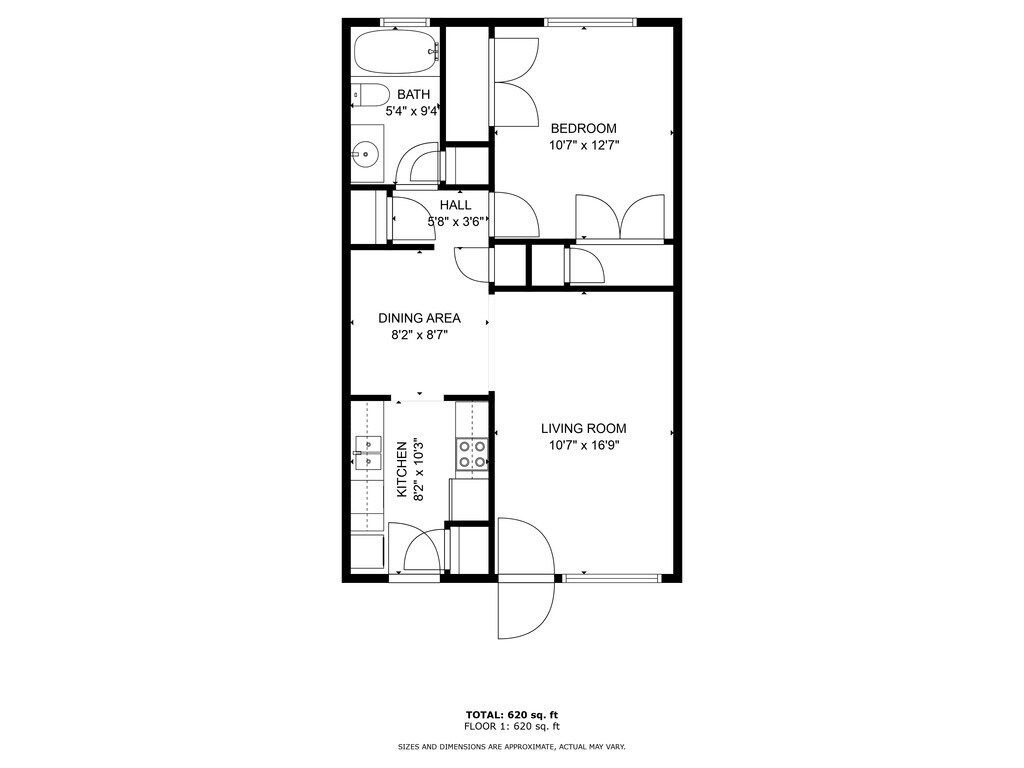 1 Dormitorio, 1 Baño, 730 pies²Disponible AhoraGalería del Modelo