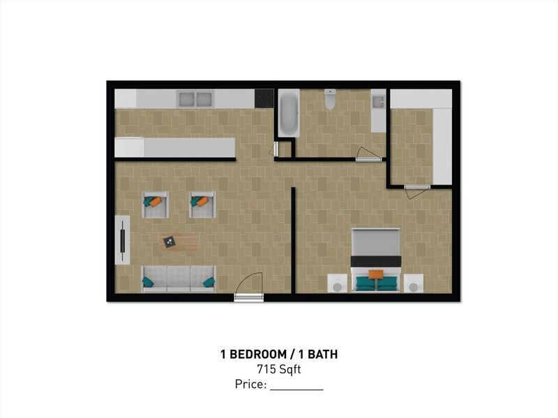 1 Dormitorio, 1 Baño, 715 pies²Disponible AhoraGalería del Modelo