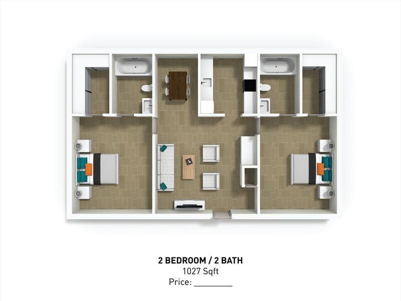 Modelo de apartamento: A4 - 2BD/2BA2 Dormitorios, 2 Baños, 1027 sq ftDisponible Ahora![]()
