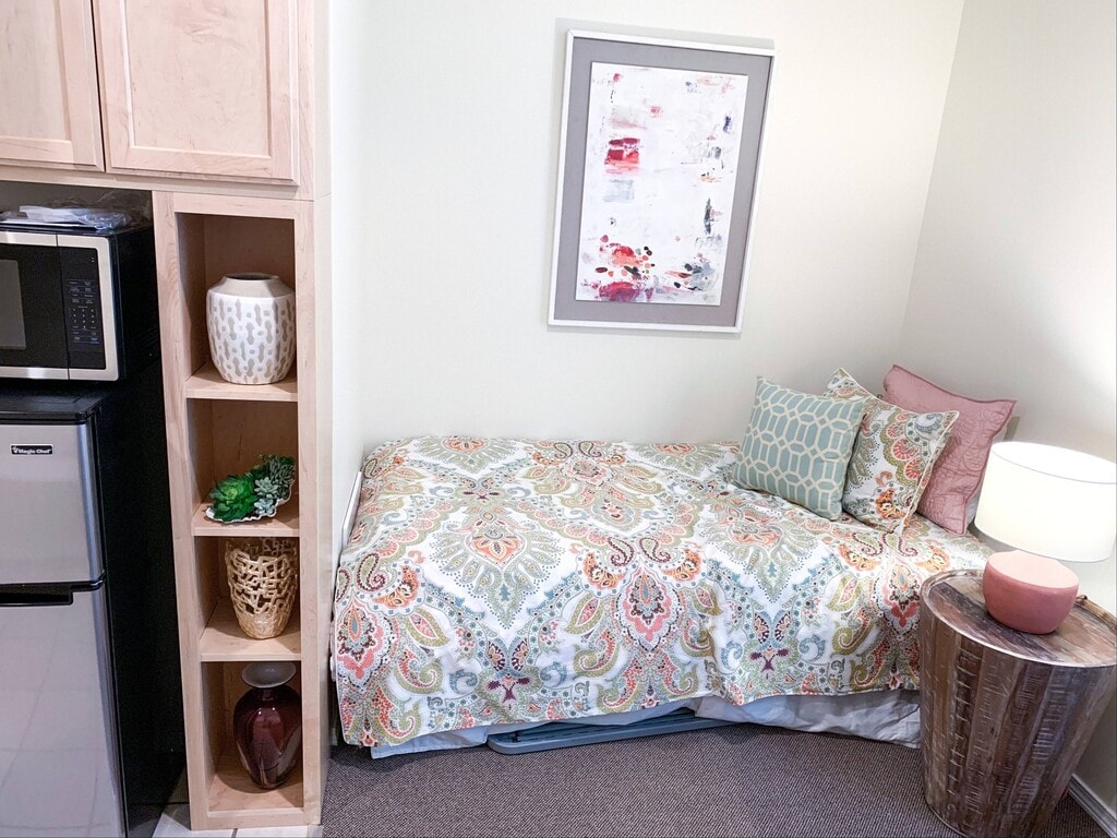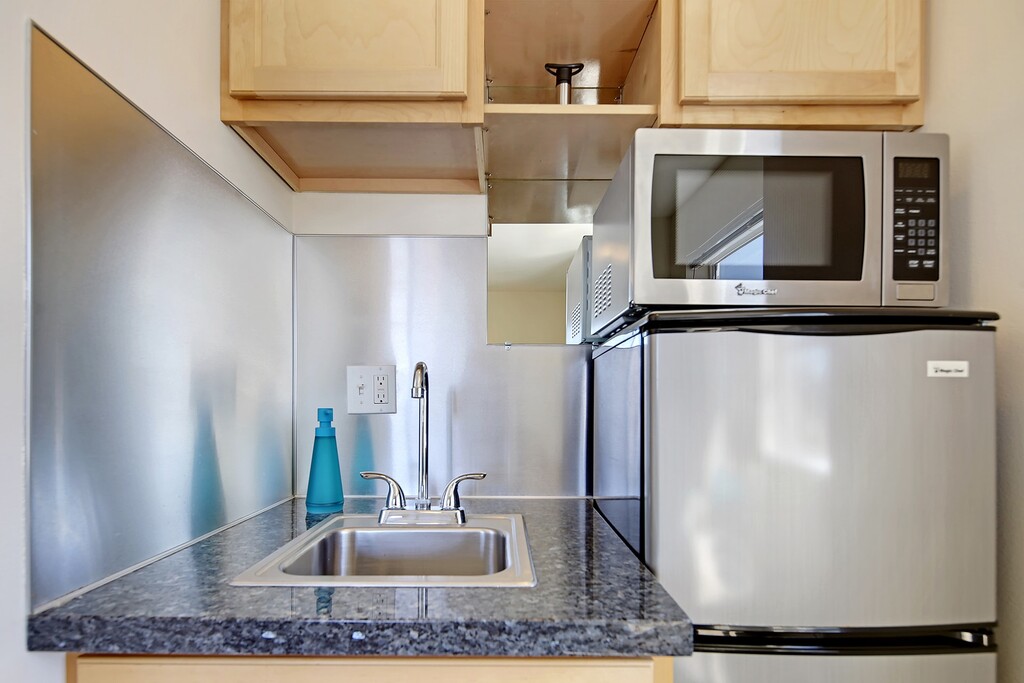 aLos estudios dePodment® en Giardino, uno de nuestros edificios más nuevos, se encuentran a solo unas cuadras de todo el bullicio que Ballard tiene para ofrecer. Pasea por el mercado de agricultores dominical durante todo el año, ve a la playa en Golden Gardens, escucha música en vivo y, en general, rodéate de la vibrante combinación de vida urbana y alma marítima de este vecindario histórico. Las suites estándar de Giardino combinan todas las características clásicas de las pods, una kitchenette con encimeras de cuarzo, un horno de microondas y un refrigerador de tamaño 3/4, un organizador de armario ajustable y una cama gemela, mesa y silla de cortesía, mientras que las pods más grandes del edificio también ofrecen estufas personales. Todas las unidades estándar están decoradas con techos más altos de 2,5 metros, mientras que los lofts del piso superior son aún más espaciosos, y varios de ellos tienen vistas encantadoras de los Juegos Olímpicos. ¡Tu Pod te está esperando!