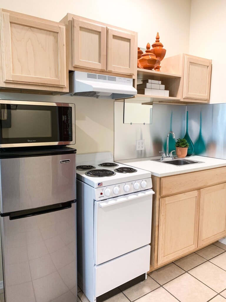 - Algunas unidades tienen estufas y otras tienen placas de cocción. La mayoría de las unidades no tienen cocina, pero