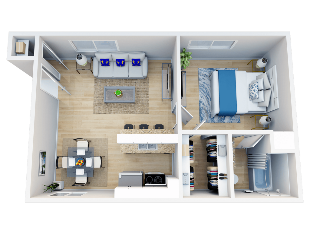 1 Dormitorio, 1 Baño, 650 pies²Disponible AhoraGalería del Modelo