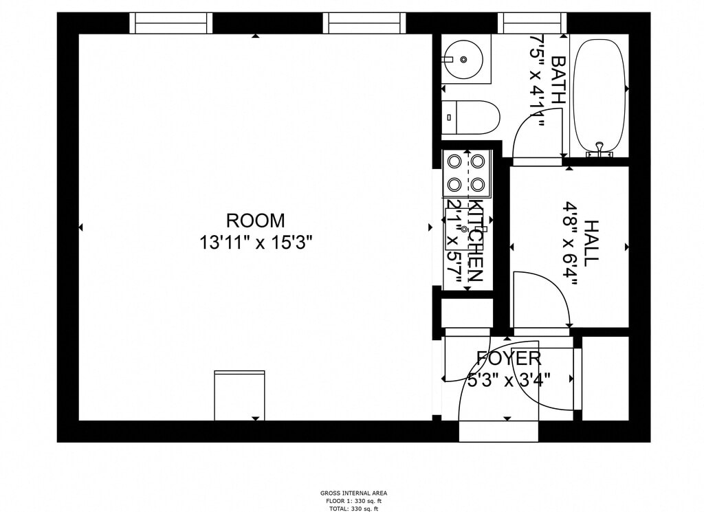 Efficiency - Plano 1 Unidad de apartamento: E2Modelo de apartamento: Efficiency$1,030Estudio, 1 Baño, 625 sq ftDisponible March 27, 20261 Dormitorio