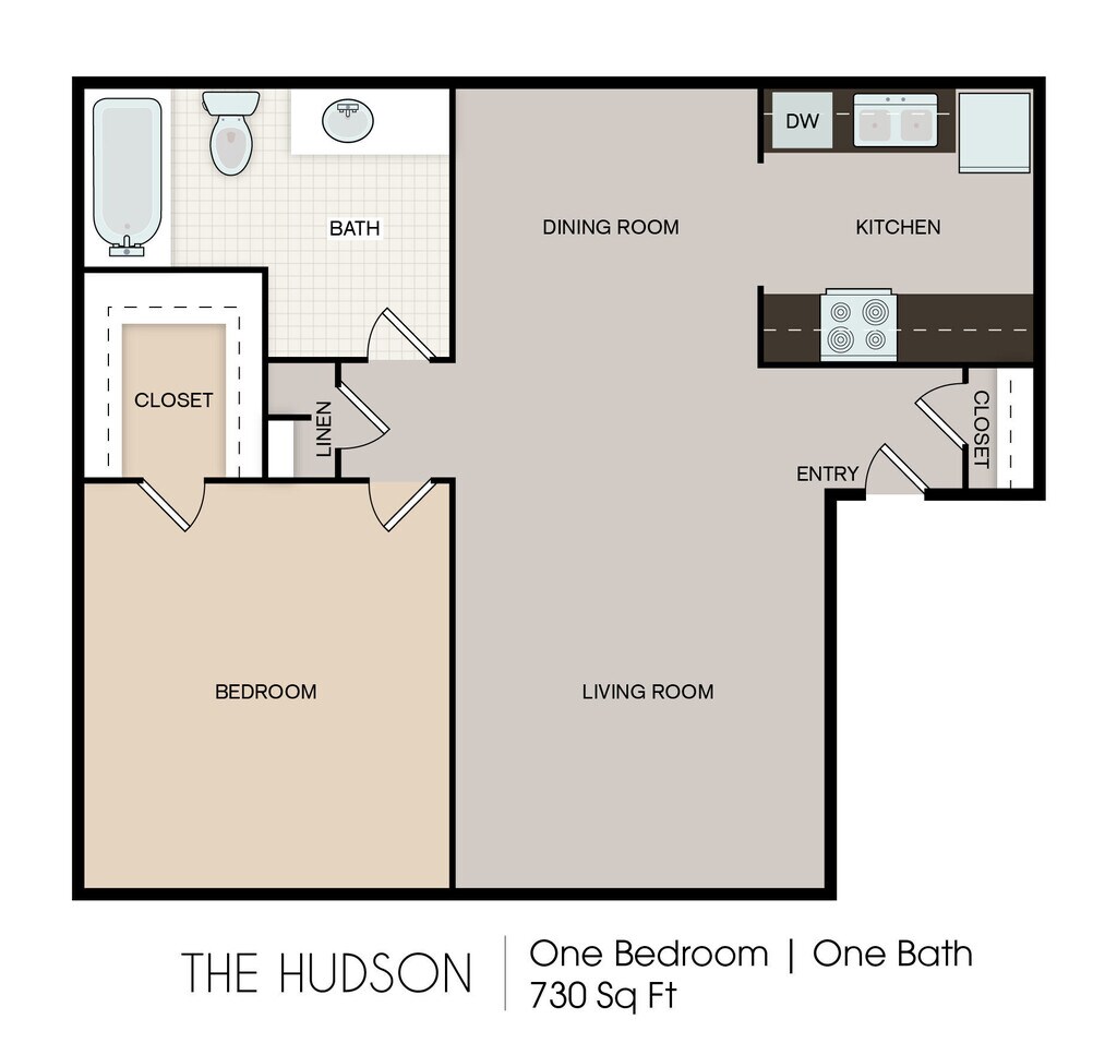 1 Dormitorio, 1 Baño, 730 pies²Disponible AhoraGalería del Modelo