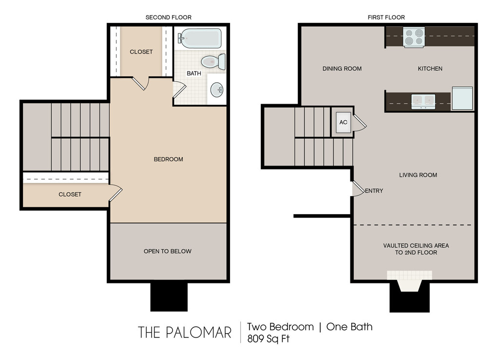 Modelo de apartamento: The Palomar$1,0921 Dormitorio, 1 Baño, 809 sq ftNo DisponibleThe Palomar - Plano 1 2 Dormitorios