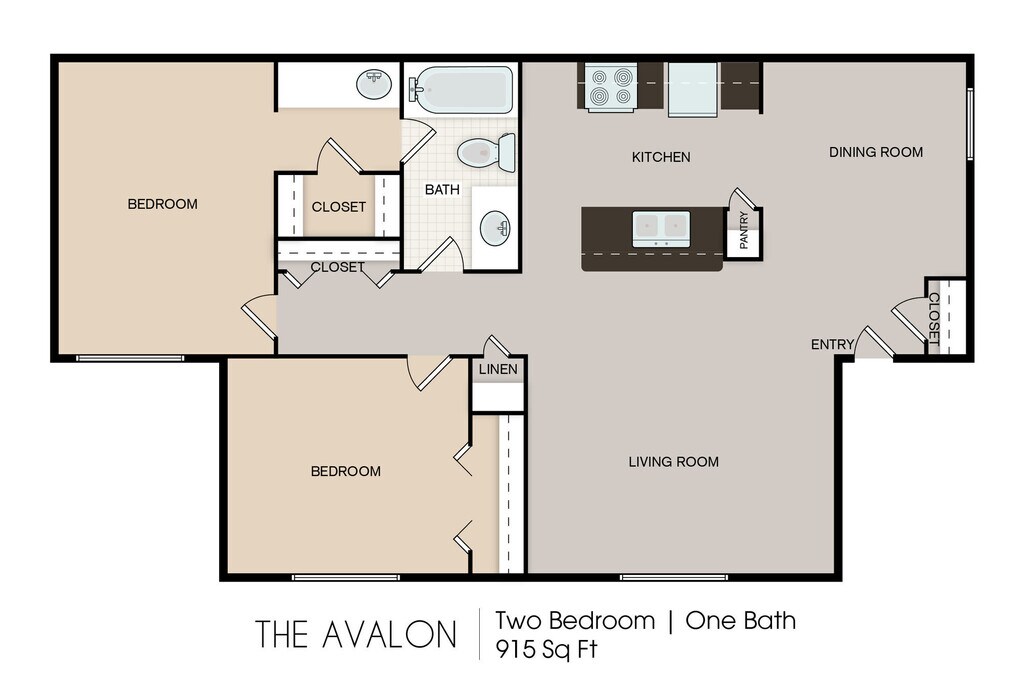 2 Dormitorios, 1 Baño, 915 pies²Disponible Oct 17Galería del Modelo