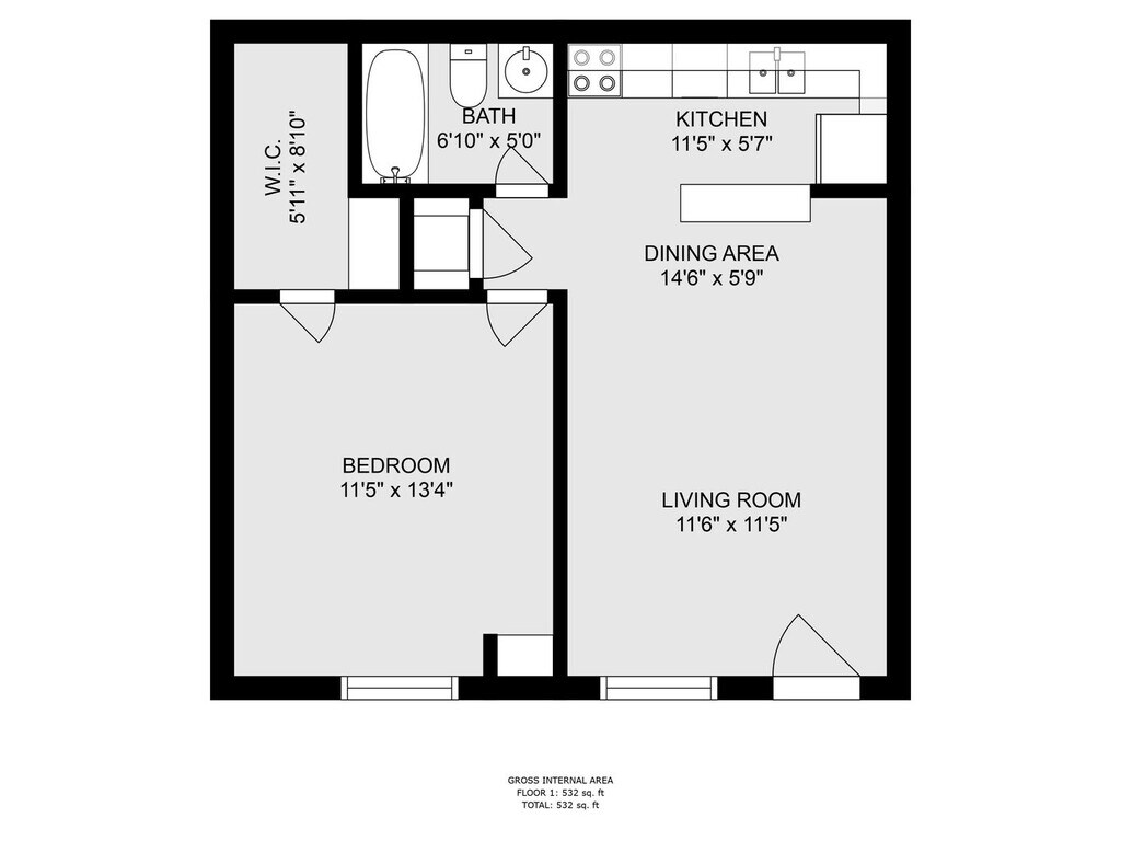 1 Dormitorio, 1 Baño, 532 pies²Disponible AhoraGalería del Modelo