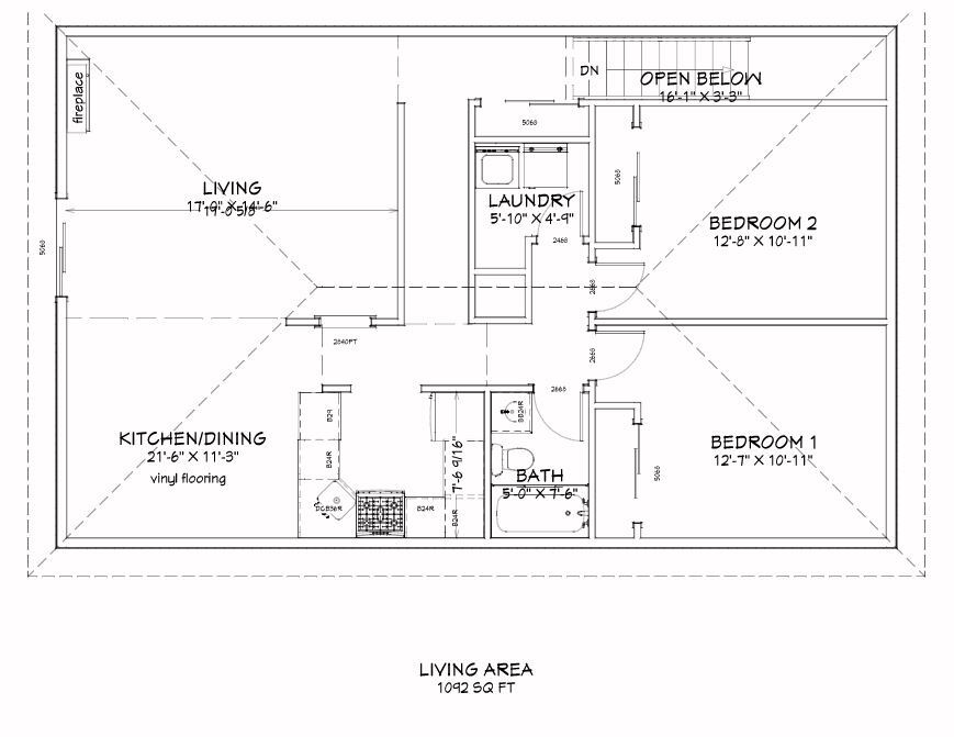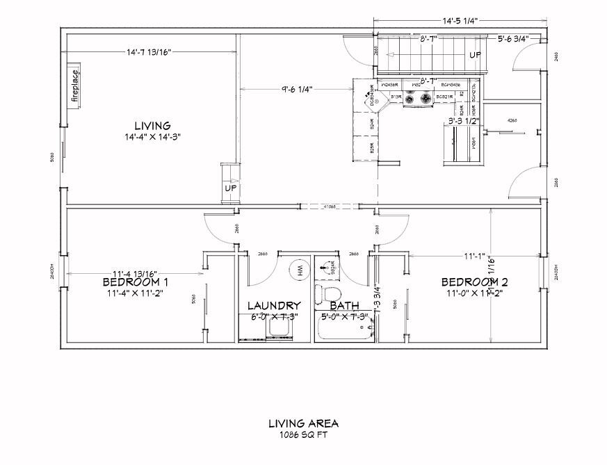 2 Dormitorios, 1 Baño, 1100 pies²Galería del Modelo