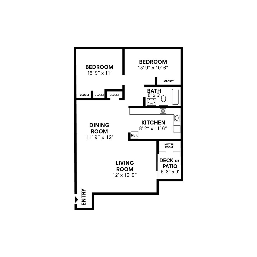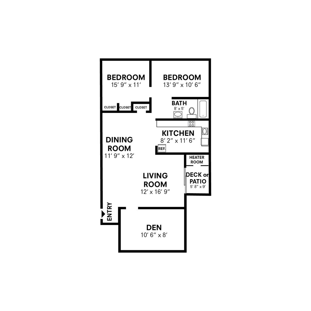 Modelo de apartamento: Two Bedroom - 907 sqftDesde $1,5152 Dormitorios, 1 Baño, 907 sq ftDisponible AhoraPlanosFotos![]()