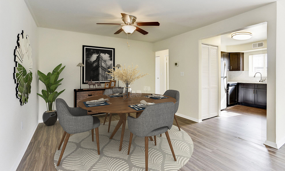 Modelo de apartamento: One BedroomDesde $1,2901 Dormitorio, 1 Baño, 681-769 sq ftDisponible Ahora![]()