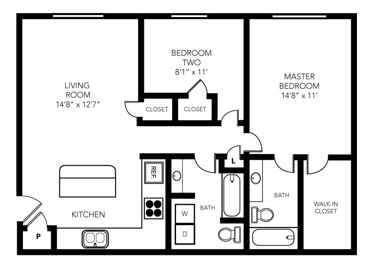 2 Dormitorios, 2 Baños, 866 pies²Galería del Modelo