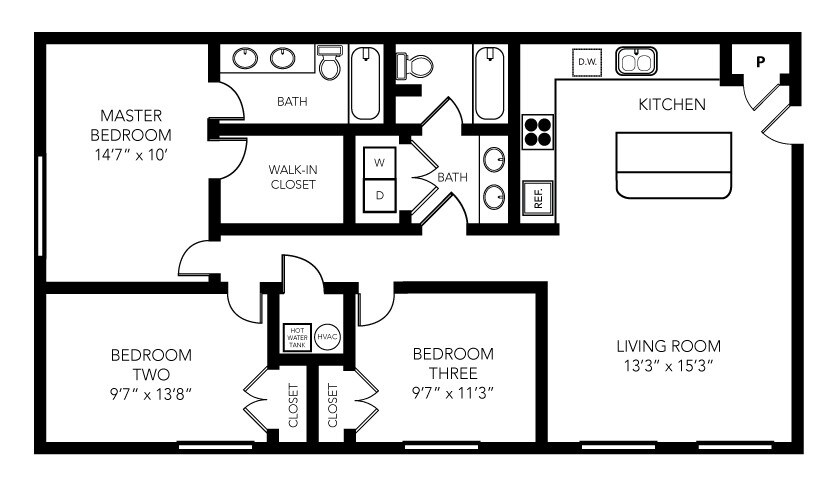 3 Dormitorios, 2 Baños, 1263 pies²El más grandeEsta opción tiene las unidades más grandes para este modeloGalería del Modelo