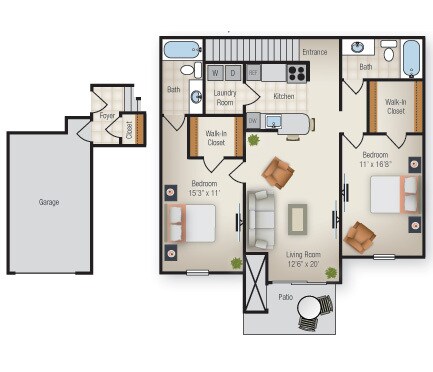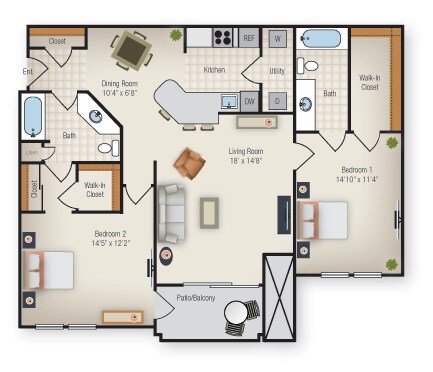 The Wentworth - Plano 1 Unidad de apartamento: 625-309Modelo de apartamento: The Wentworth$2,3952 Dormitorios, 2 Baños, 1450 sq ftDisponible December 15, 2025The La Serra