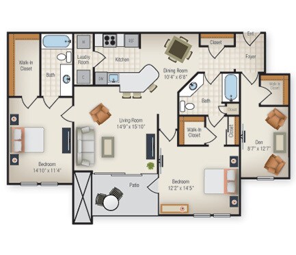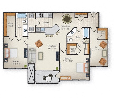 Modelo de apartamento: The AugustaDesde $1,9751 Dormitorio, 1 Baño, 905 sq ftDisponible Ahora![]()