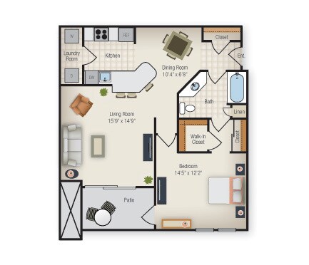 The Augusta - Plano 1 Unidad de apartamento: 625-206Modelo de apartamento: The Augusta$1,9751 Dormitorio, 1 Baño, 905 sq ftDisponible AhoraThe Durness