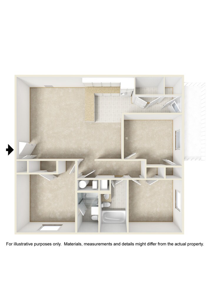 Modelo de apartamento: 3BR 2 BATHLlame para Precios3 Dormitorios, 2 Baños, 960 sq ftNo Disponible![]()