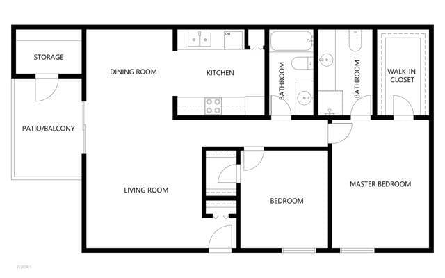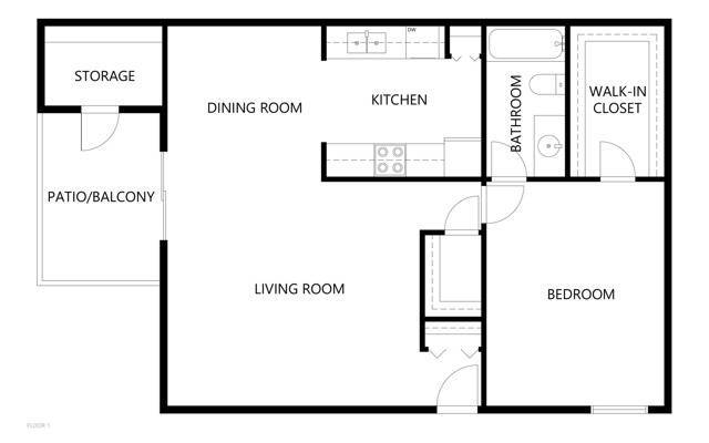 Modelo de apartamento: A1Desde $9991 Dormitorio, 1 Baño, 675 sq ftDisponible Ahora![]()