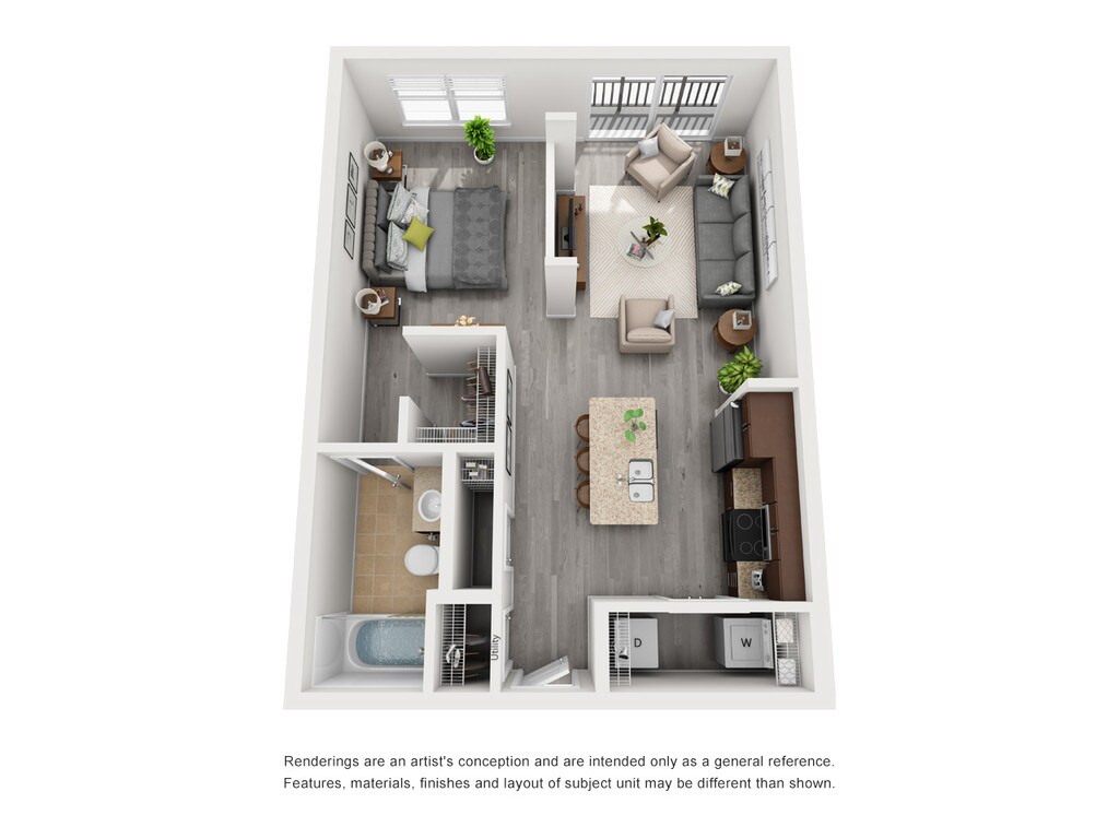 Estudio, 1 Baño, 847 pies²Disponible AhoraGalería del Modelo