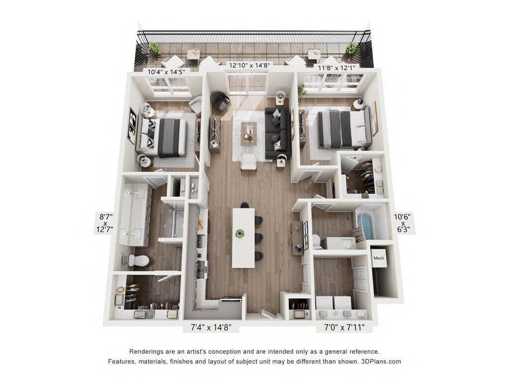 1 Dormitorio, 1 Baño, 1014 pies²Disponible AhoraGalería del Modelo