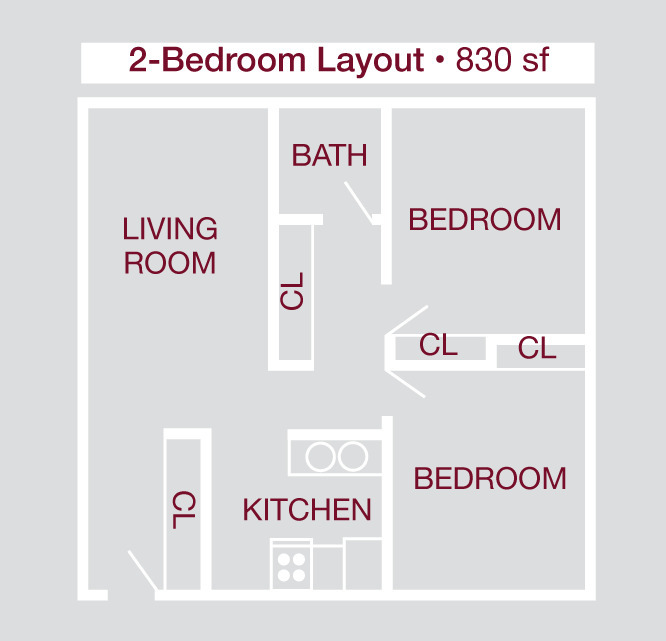 Modelo de apartamento: 2 BR/ 1 BA$9852 Dormitorios, 1 Baño, 830 sq ftDisponible August 1, 2026![]()