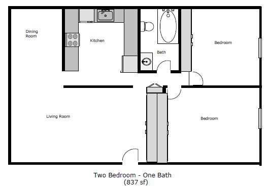 2 Bedroom 1 Bathroom - Plano 1 2 Bedroom 1 Bath Upgraded