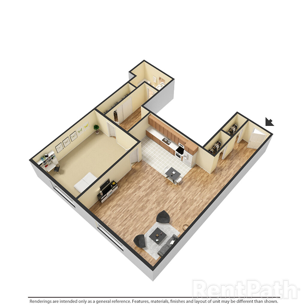 1 Dormitorio, 1 Baño, 850 pies²Disponible AhoraGalería del Modelo