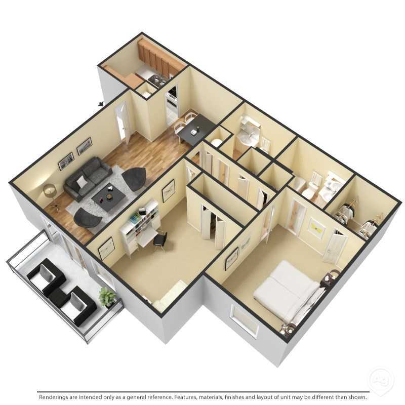B2 - Imagen 1 Unidad de apartamento: 1Modelo de apartamento: B2$1,2952 Dormitorios, 2 Baños, 1000 sq ftDisponible AhoraB2 Large