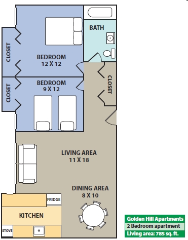 Modelo de apartamento: Chester 2-Bedroom2 Dormitorios, 1 Baño, 750 sq ftDisponible Ahora![]()