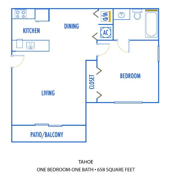 Modelo de apartamento: Tahoe1 Dormitorio, 1 Baño, 658 sq ftNo Disponible![]()