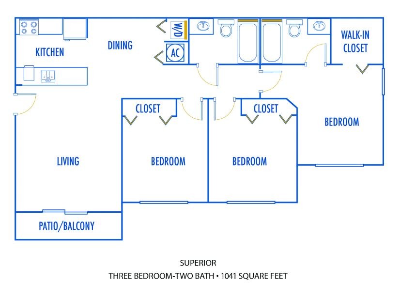 Modelo de apartamento: Superior3 Dormitorios, 2 Baños, 1041 sq ftNo Disponible![]()