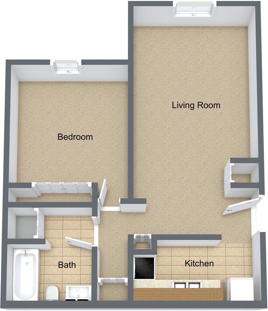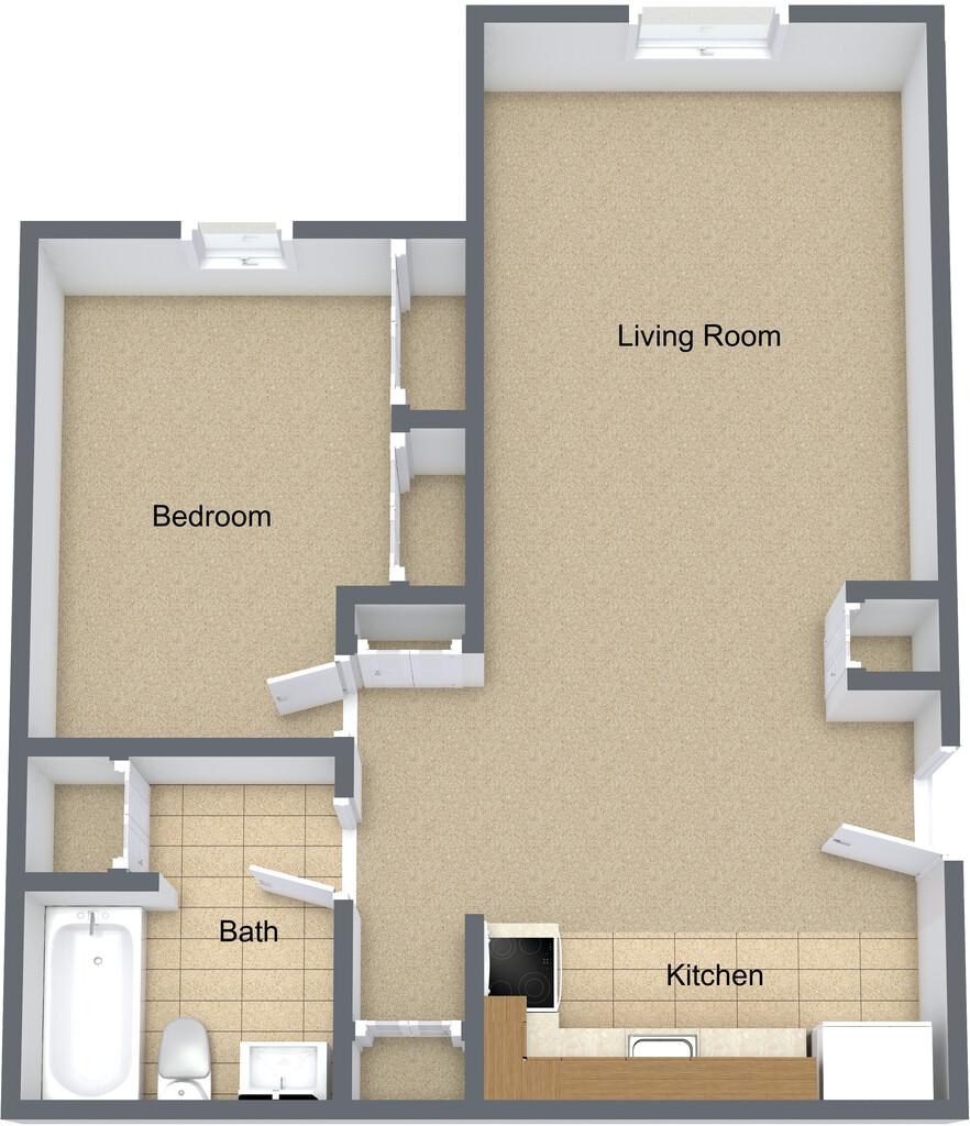 1 Dormitorio, 1 Baño, 790 pies²Galería del Modelo
