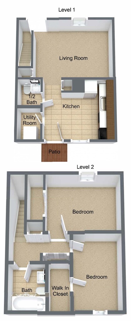 Modelo de apartamento: 2 Bedroom Townhome$1,0502 Dormitorios, 1.5 Baños, 1180 sq ftDisponible November 21, 20252 Bedroom Townhome - Plano 1 2 Bedroom