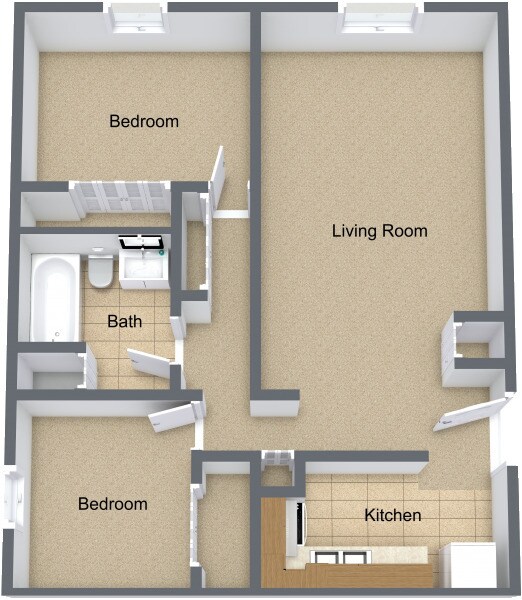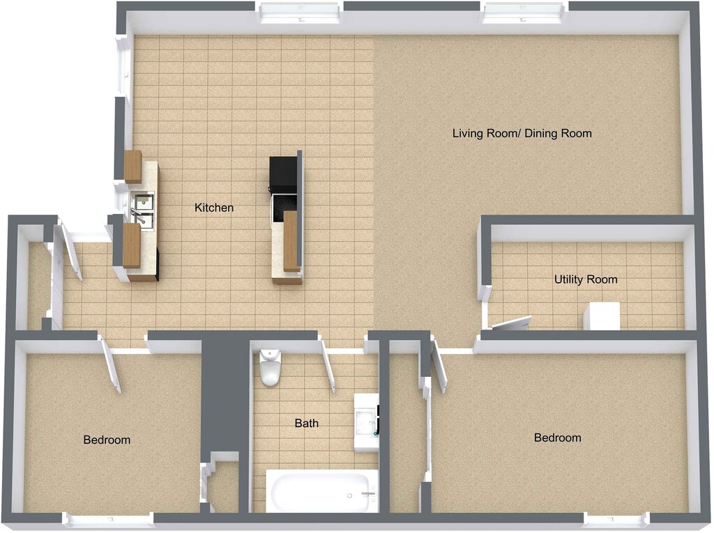 2 Dormitorios, 1 Baño, 900 pies²Galería del Modelo