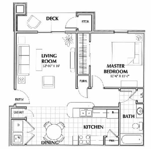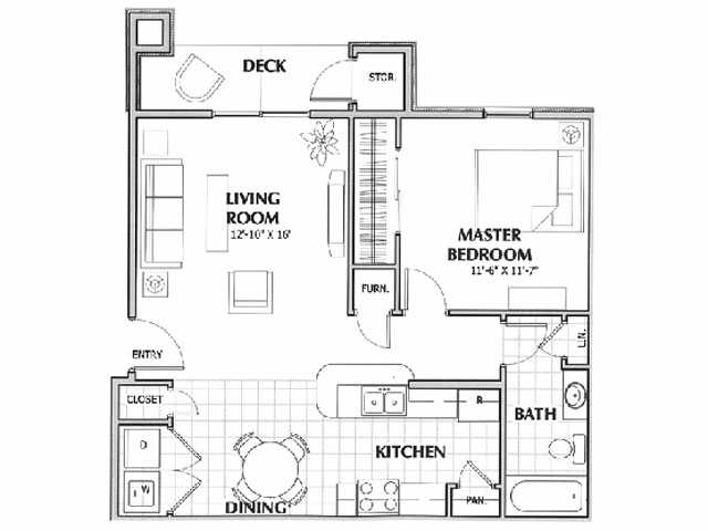 1 Dormitorio, 1 Baño, 750 pies²Galería del Modelo