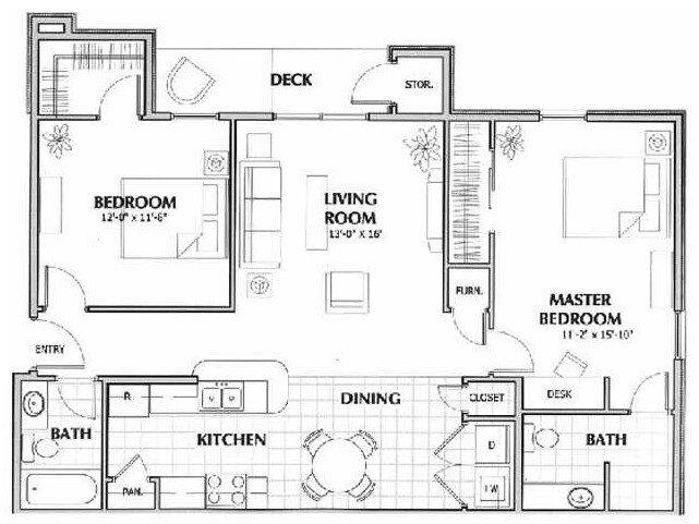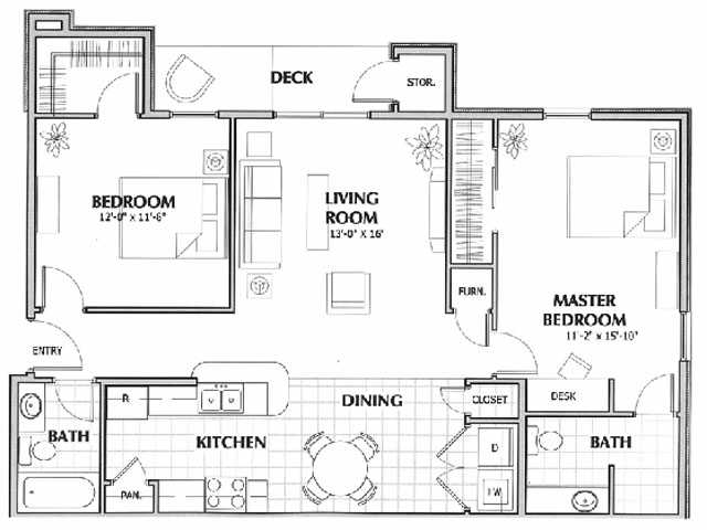 Modelo de apartamento: 2x22 Dormitorios, 2 Baños, 1093 sq ftNo Disponible![]()