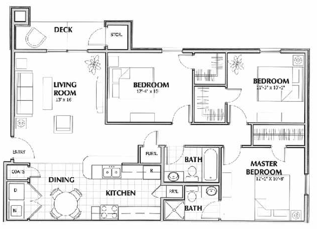 Modelo de apartamento: 3x23 Dormitorios, 2 Baños, 1108 sq ftNo Disponible![]()