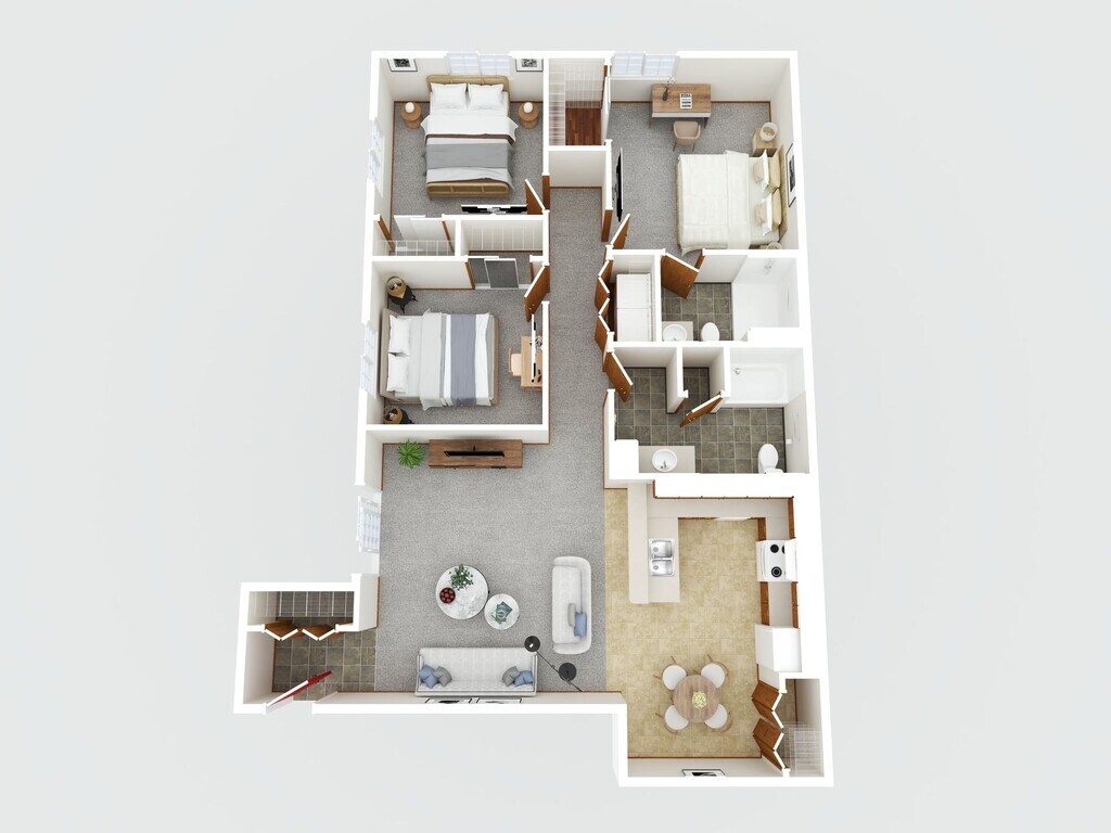 3 Dormitorios, 2 Baños, 1280 pies²Disponible AhoraGalería del Modelo