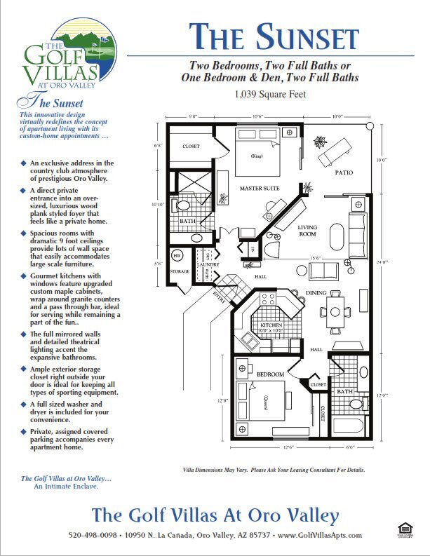 September 16, 2024I love it here. It’s my second time living here at the Golf Villas. Got tired of yard work, and I missed the Catalina Mtn views. I also like the the 1145 sq ft 2x2 apartment.Property Manager Responded