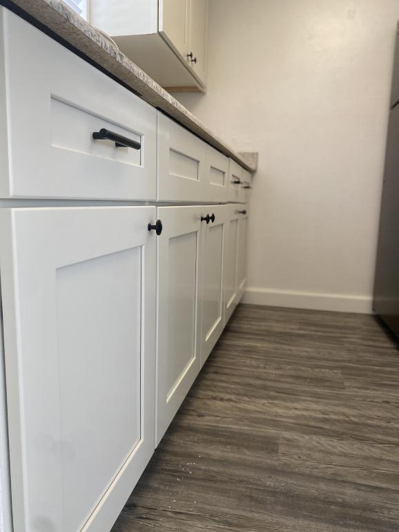 - Gabinetes elegantes de estilo Shaker con cierre suave