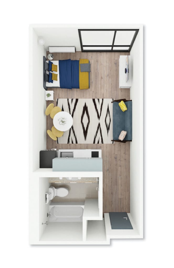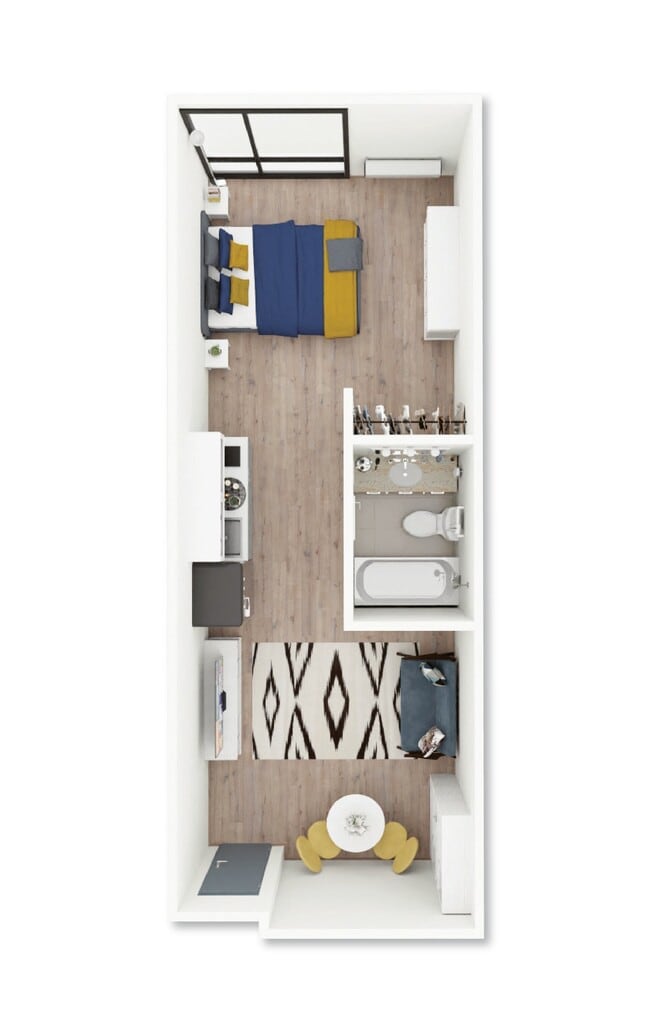 Modelo de apartamento: Sage$650Estudio, 1 Baño, 330 sq ftDisponible Ahora![]()