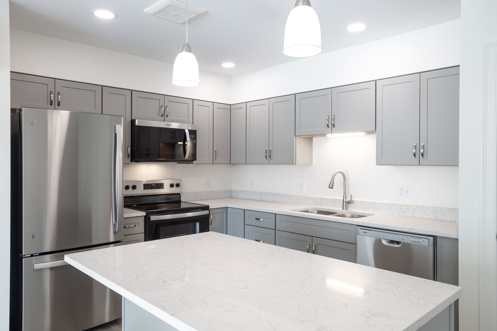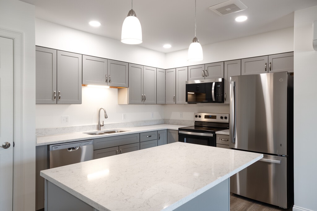 Brand new spacious 2 bedroom 1 bathroom units located in downtown Sanford. 12 units, 3 floors, elevator access. Assigned off street parking, secure building, 24/7 surveillance. Window blinds, curtain rods provided. Stainless steel appliances: electric range, refrigerator with bottom drawer freezer, over the range microwave, and dishwasher. W/D hookup. Tile in bathroom, and laminate hardwood throughout. LED dimmable lighting. 3 zone wall heat pumps for energy efficient heating and cooling. 933 Main Street Sanford, ME 04073 Owner pays for city water, sewerage, trash removal, snow removal, and landscaping. Renter pays for for electricity (heating & cooling), and Breezeline cable/internet. One year lease required. Indoor cats only (2 max) $25 monthly fee for each cat. $47 background check fee required for every individual 18 years or older. No smoking in building. Designated outdoor smoking area only. Assigned parking spots (2) vehicle max per unit.