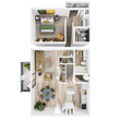 2 Dormitorios, 1 Baño, 890 pies²Disponible AhoraGalería del Modelo