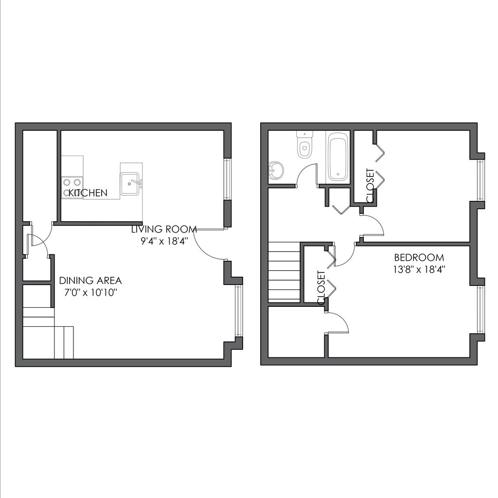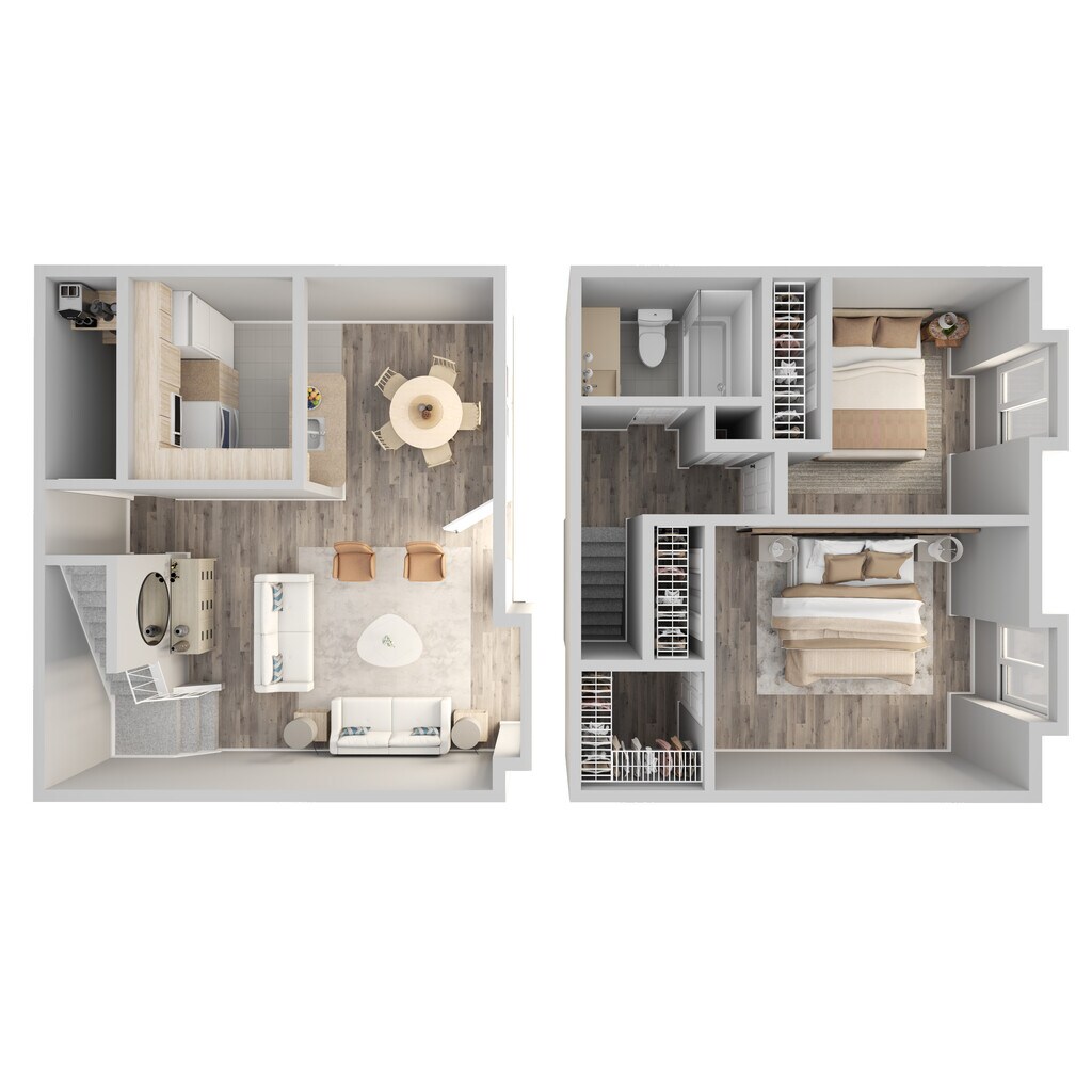 2 Dormitorios, 1 Baño, 840 pies²Disponible AhoraGalería del Modelo