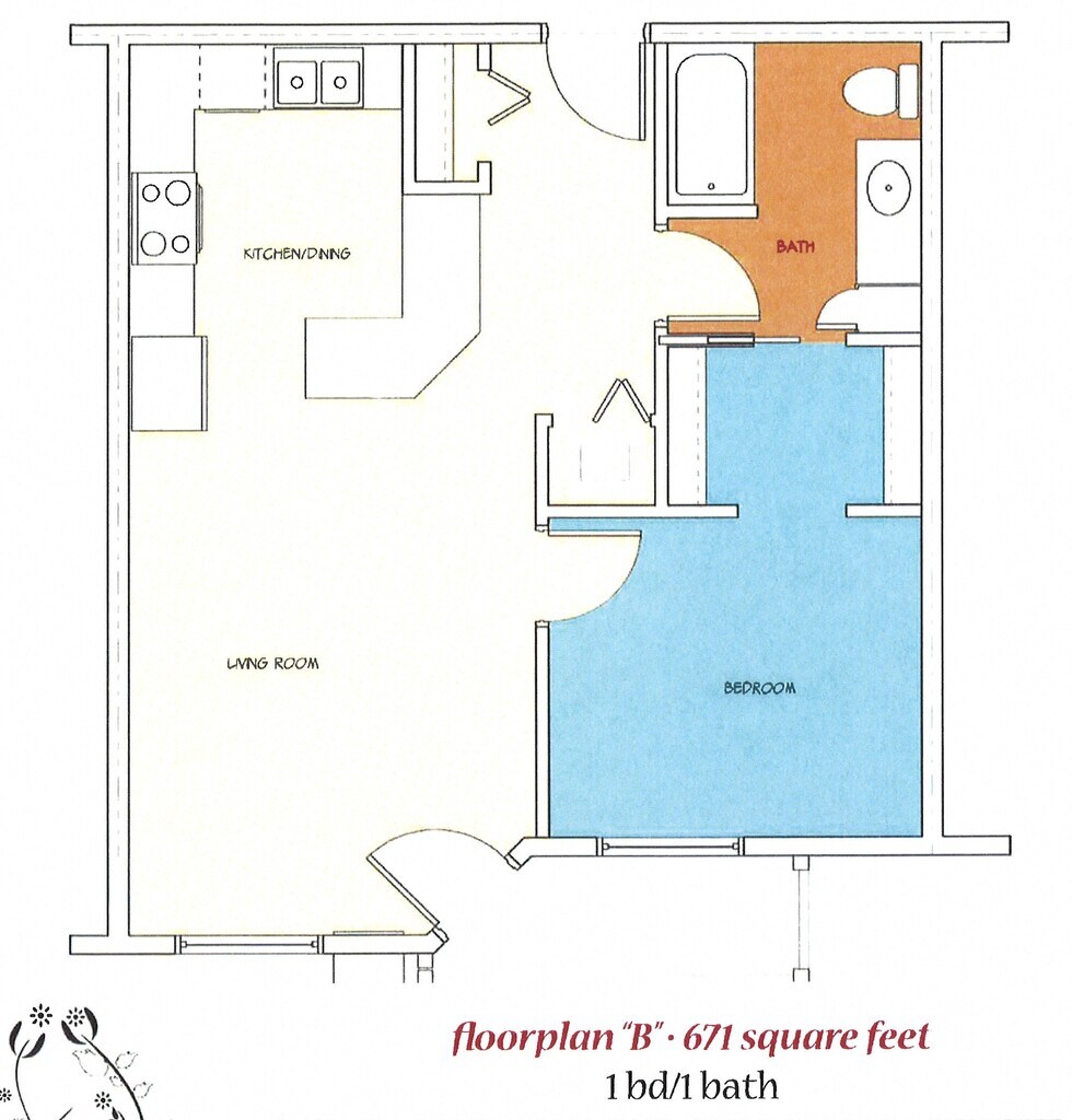 Modelo de apartamento: 1 Bedroom 1 Bathroom$1,1001 Dormitorio, 1 Baño, 671 sq ftNo Disponible![]()