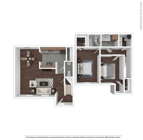 Modelo de apartamento: B2Desde $1,4492 Dormitorios, 2 Baños, 1096 sq ftDisponible Ahora![]()