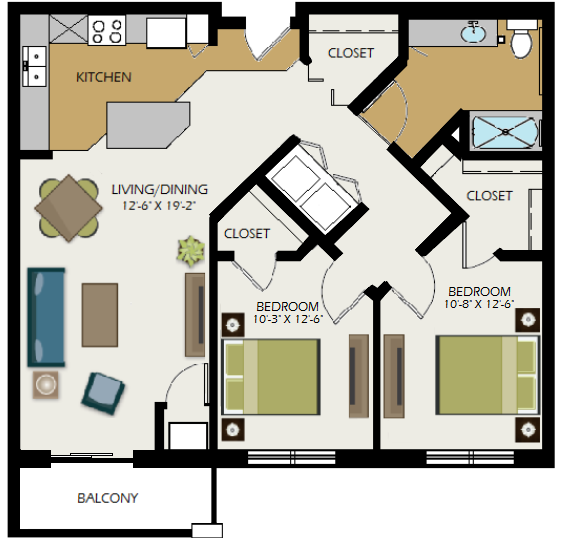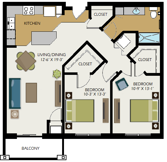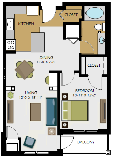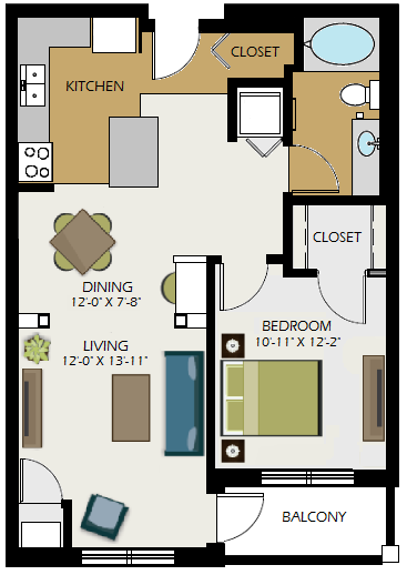 Modelo de apartamento: The MitchellLlame para Precios1 Dormitorio, 1 Baño, 770 sq ftNo Disponible![]()