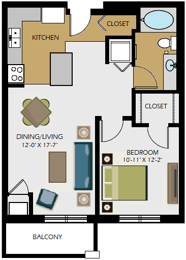 1 Dormitorio, 1 Baño, 770 pies²El más grandeEsta opción tiene las unidades más grandes para este modeloGalería del Modelo